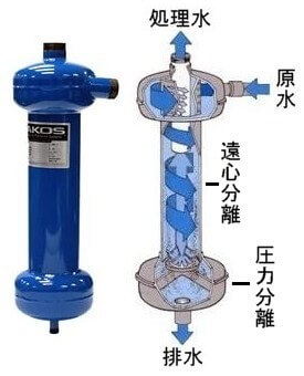 米国で開発された液体中の水と固形物を瞬時に分離する遠心分離(1次)と圧力分離(2次)を兼ね備えた高性能砂取器です。